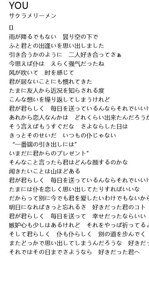 | 君が君らしく 每日を送って 幸せだったならいい | |