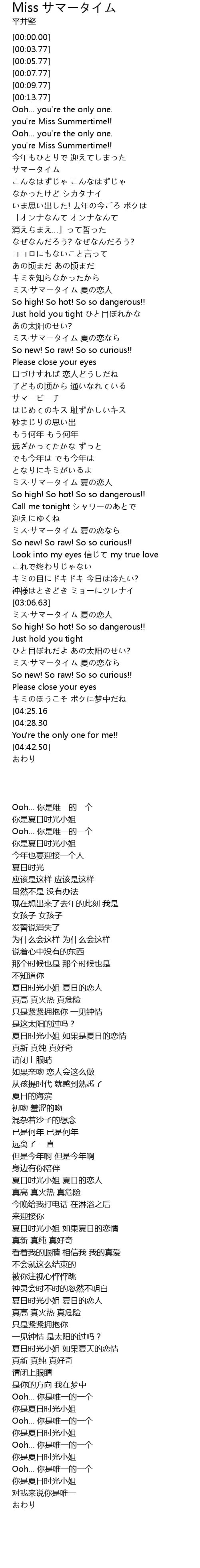 | [04:35.81][04:28.30][04:20.82][04:13.23] | you' re Miss Summertime!! |