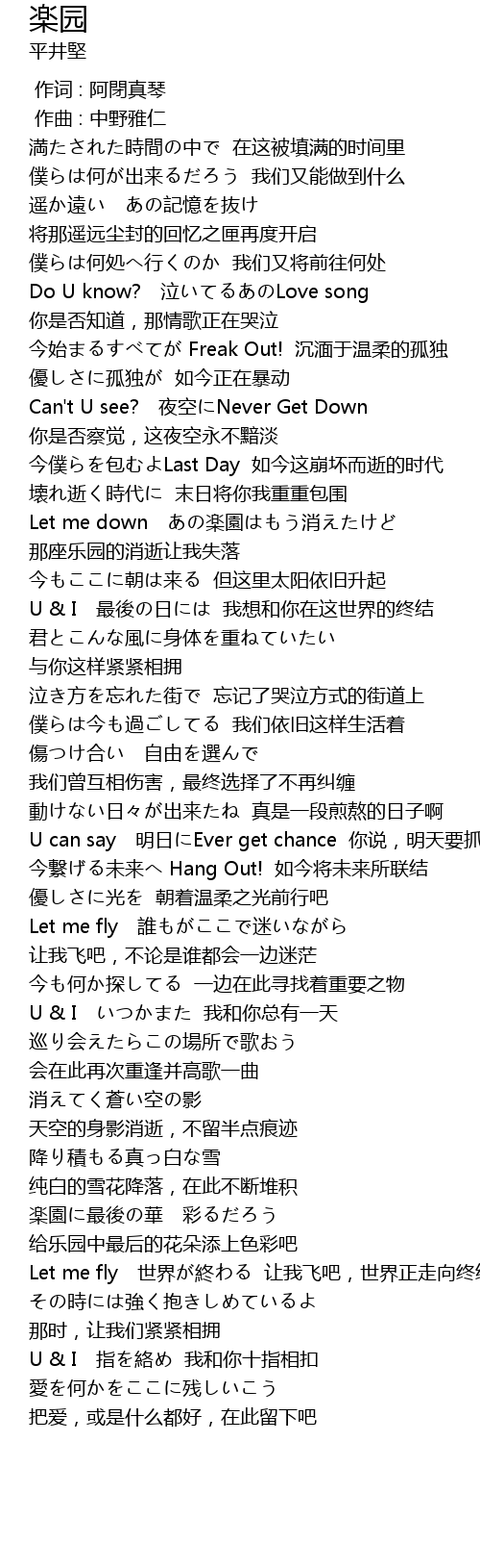 | [01:42.54] | U & I 最後の日には 我想和你在这世界的终结 |