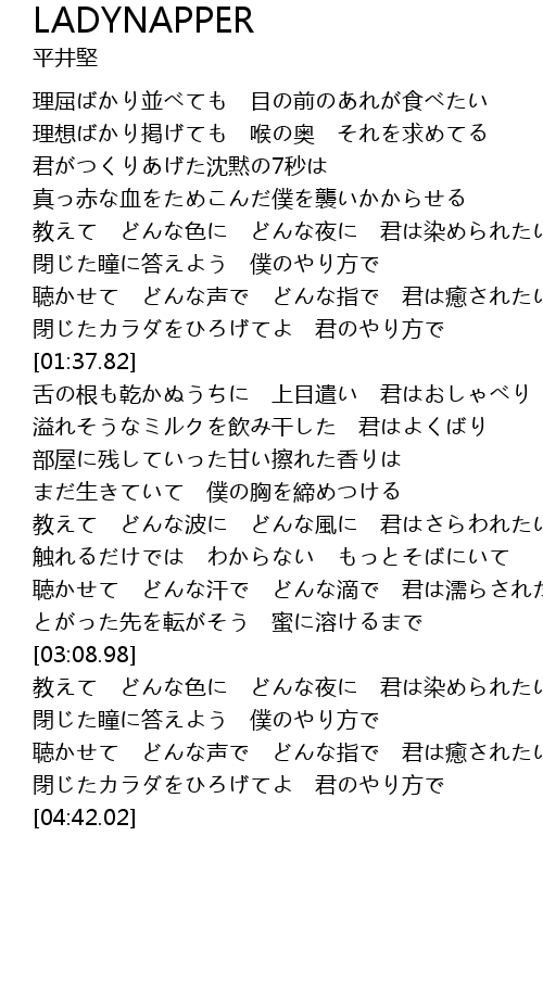 | [04:25.64] | 閉じたカラダをひろげてよ 君のやり方で |