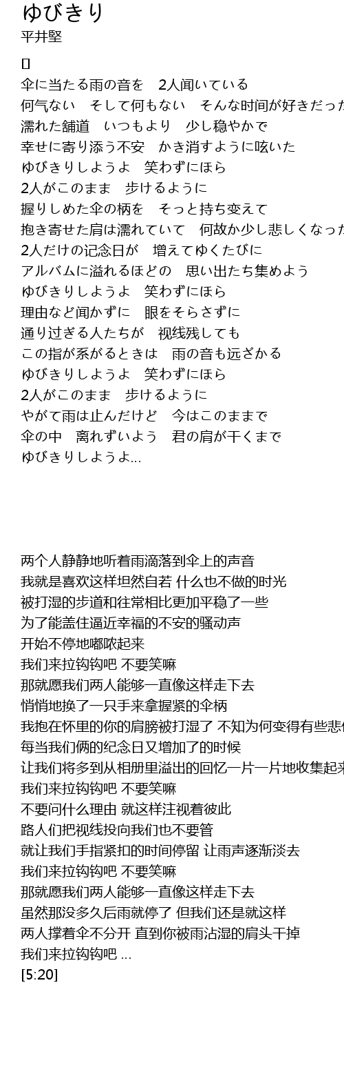 | [5:10.800] | 我们来拉钩钩吧 … |