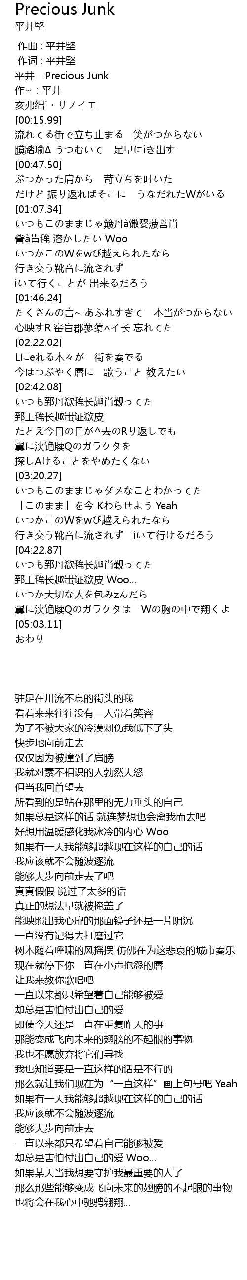 | [00:01.00] | 平井 - Precious Junk |
