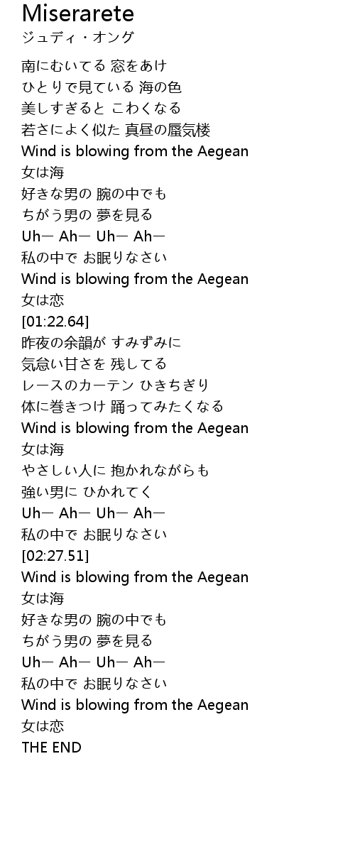 | [00:22.74] | 南にむいてる 窓をあけ |