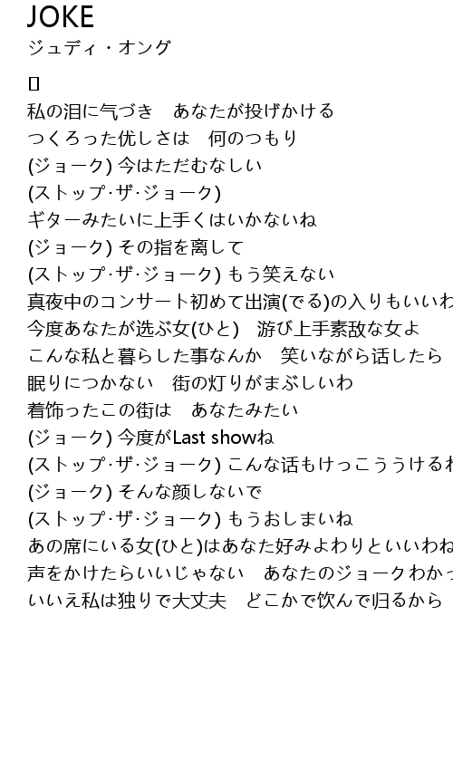 | (ストップ・ザ・ジョーク) もうおしまいね | |