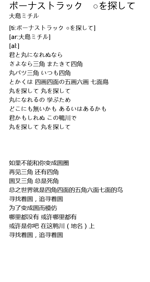 | [00:36.31] | 寻找着圆,追寻着圆 |