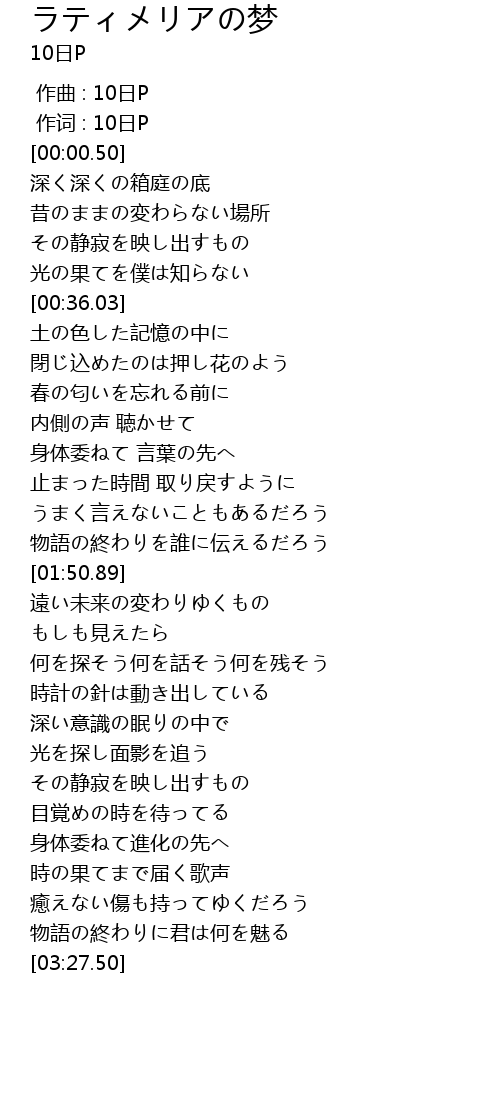 | [01:40.75] | 物語の終わりを誰に伝えるだろう |
