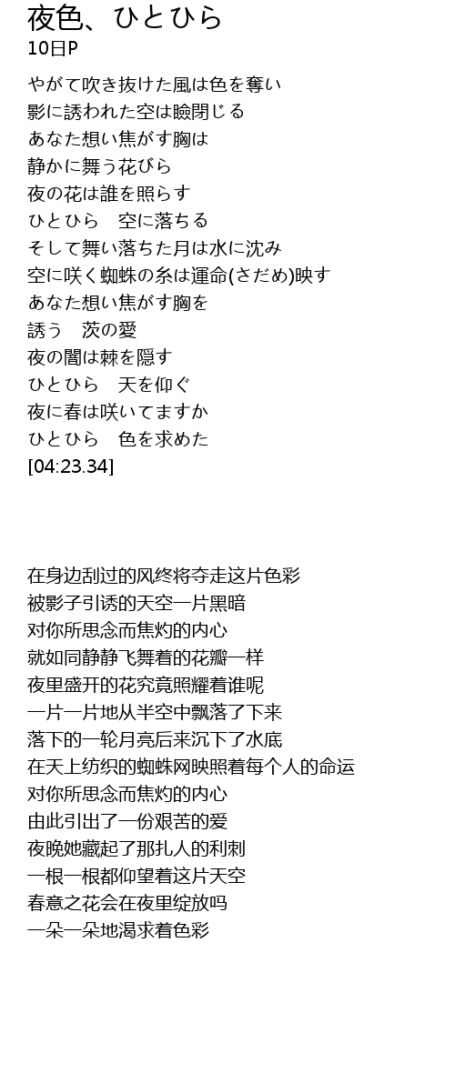 | 歌曲 | 夜色、ひとひら |