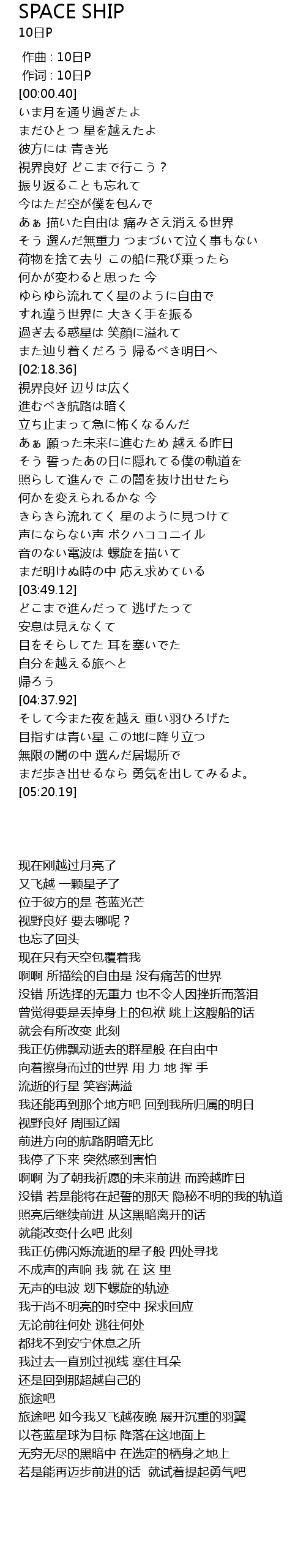 | [04:56.99] | 目指すは青い星 この地に降り立つ |