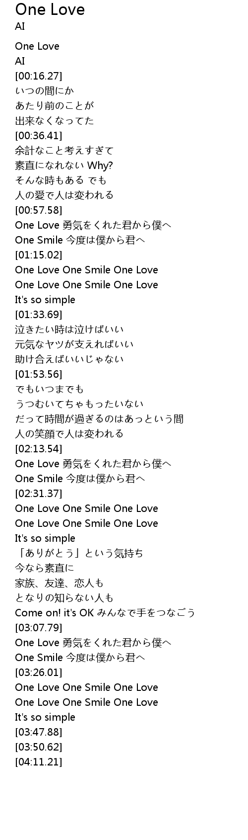 | [03:35.84] | One Love One Smile One Love |