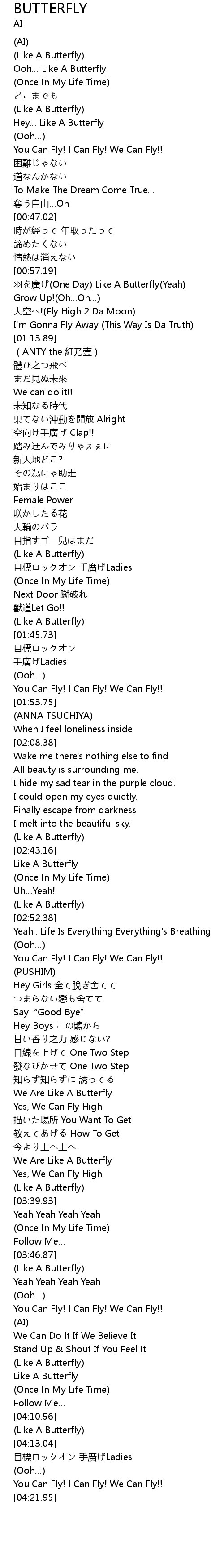 | [00:58.34] | 羽を廣げ(One Day) Like A Butterfly(Yeah) |