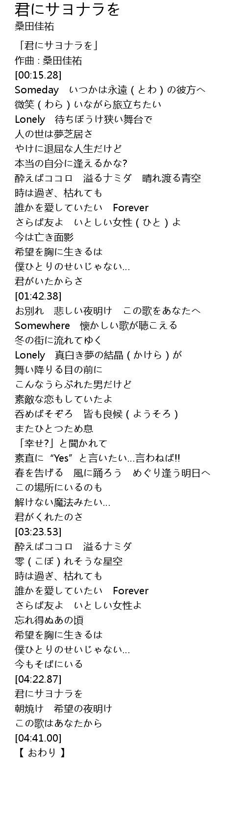 | [01:50.67] | お別れ 悲しい夜明け この歌をあなたへ |
