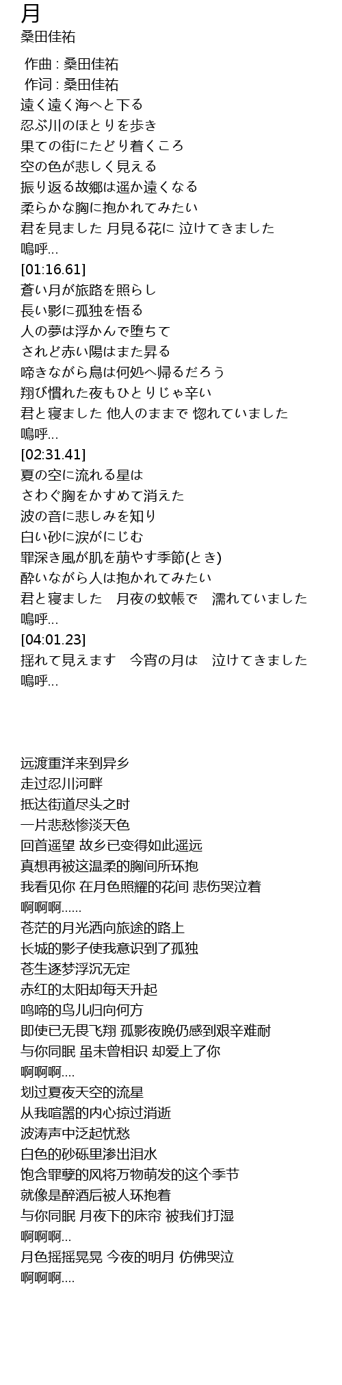 | [00:57.67] | 君を見ました 月見る花に 泣けてきました |