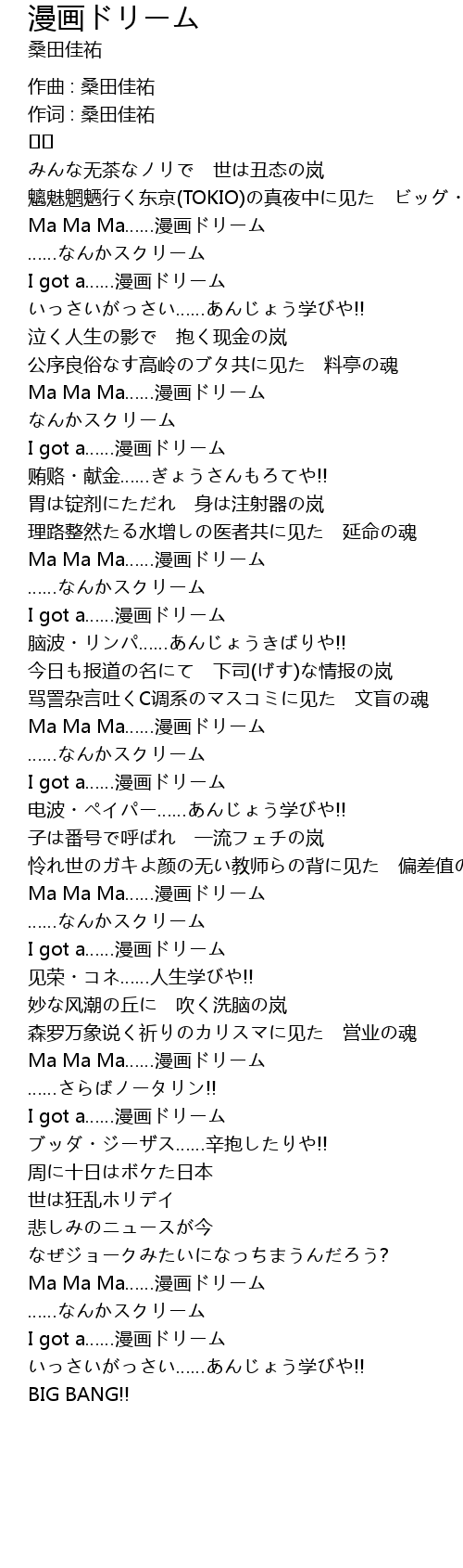 | 魑魅魍魉行く东京(TOKIO)の真夜中に见た ビッグ・バンな魂 | |