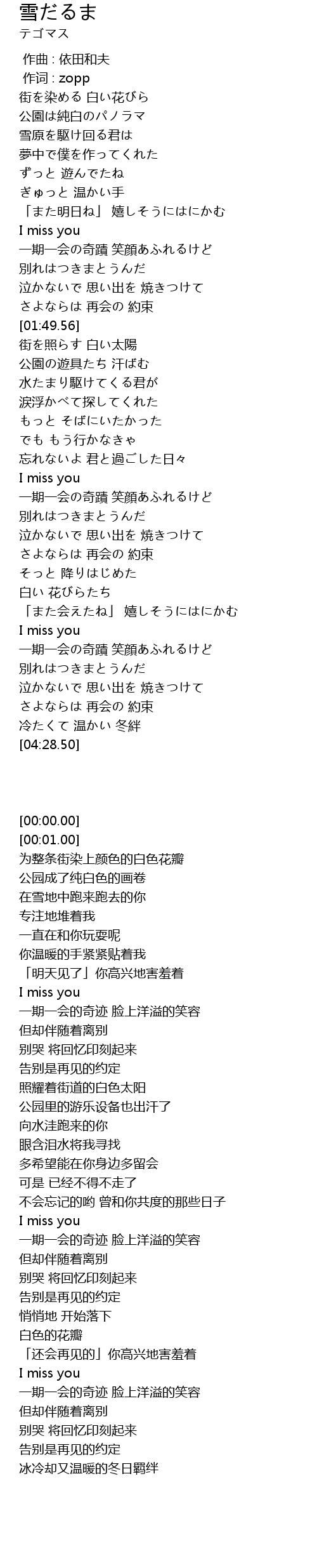 | [00:27.73] | 公園は純白のパノラマ |