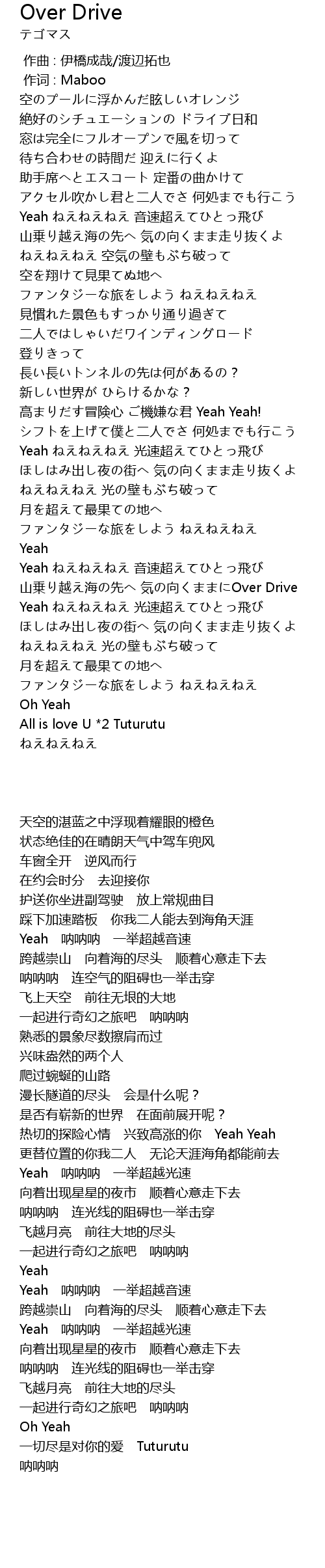 | [02:36.29] | 山乗り越え海の先へ 気の向くままにOver Drive |