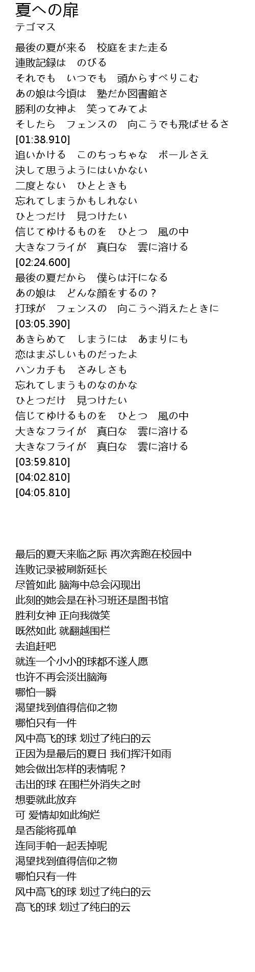 | [02:56.520] | 击出的球 在围栏外消失之时 |