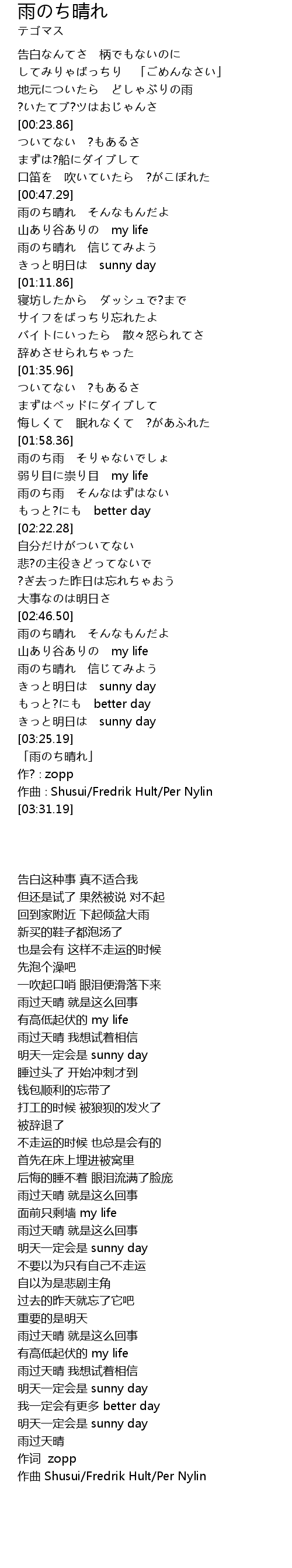 | [03:19.17] | ming ri sunny day |