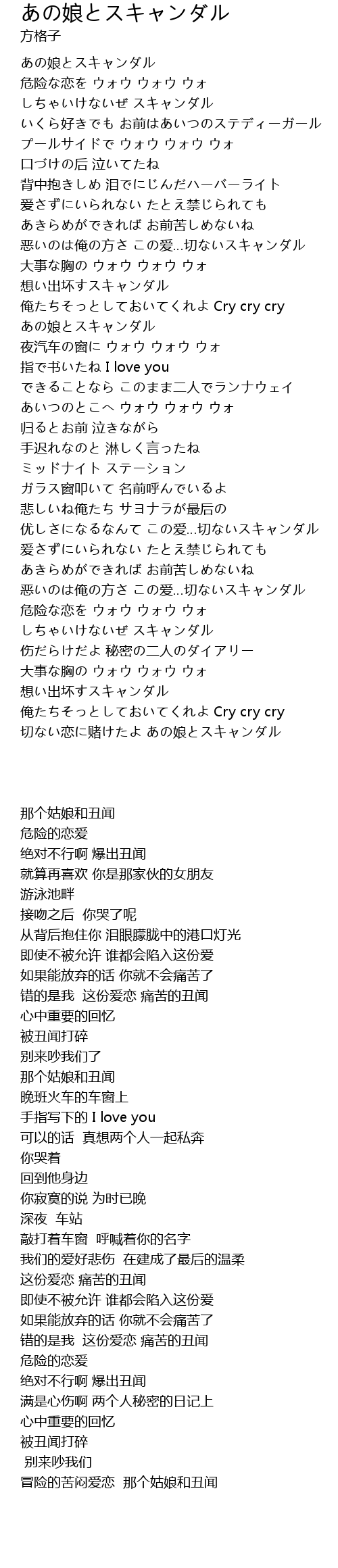 | [03:04.200] | 恶いのは俺の方さ この爱…切ないスキャンダル |