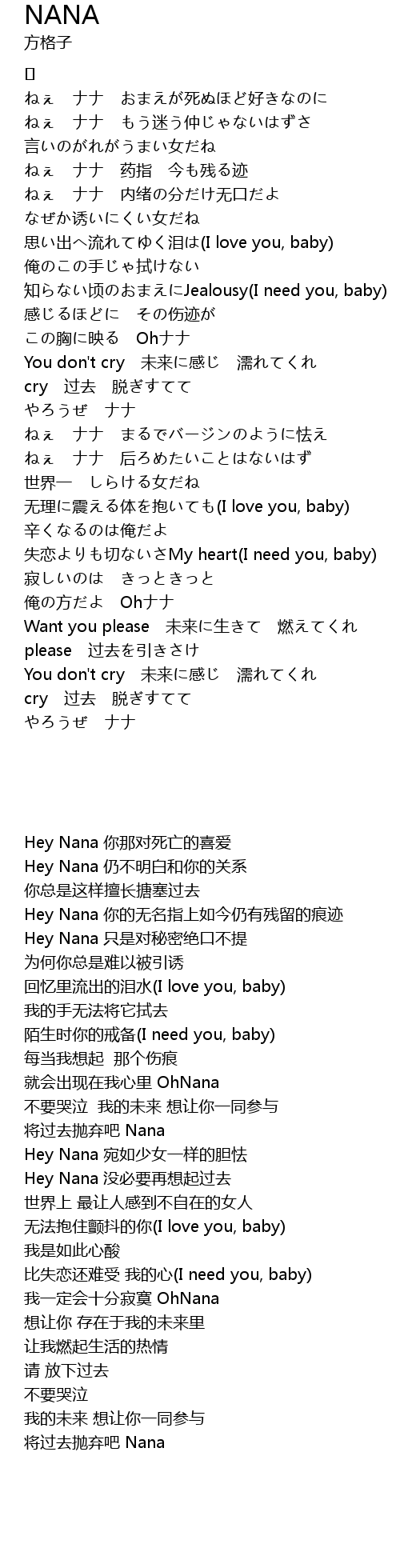 | [00:36.375] | Hey Nana 你的无名指上如今仍有残留的痕迹 |