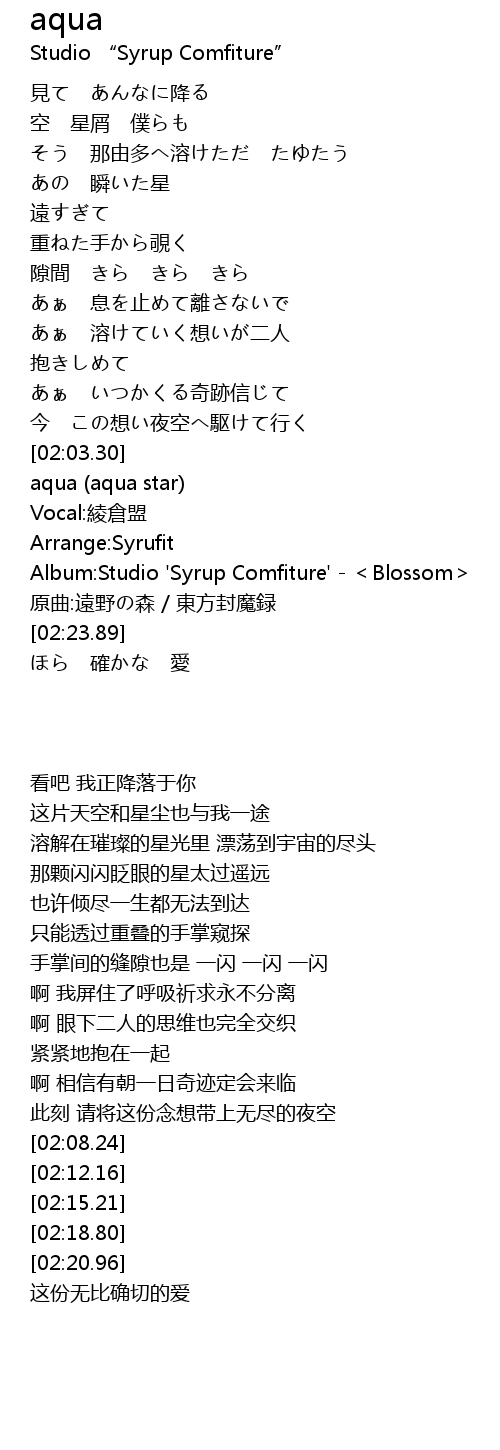 | [02:18.80] | Album: Studio ' Syrup Comfiture' Blossom |
