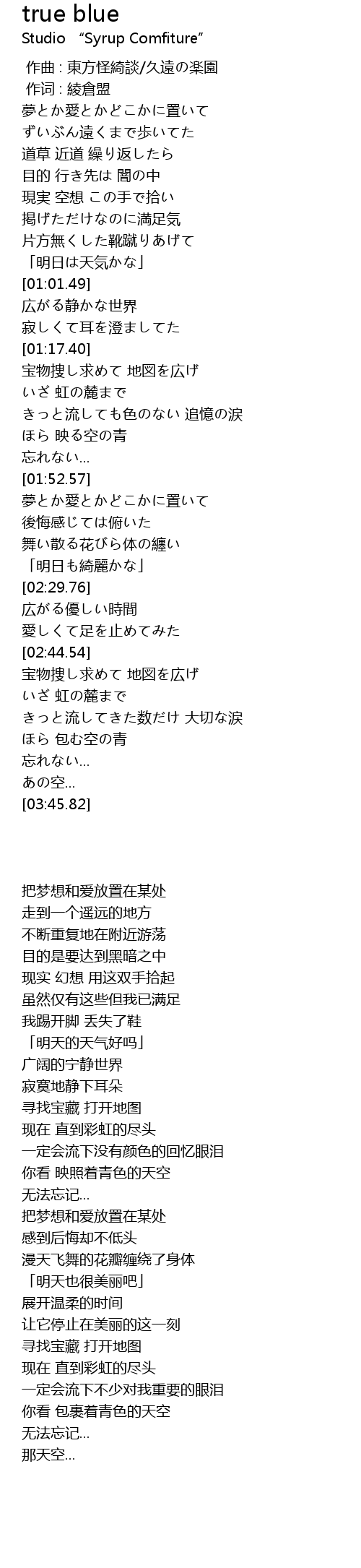 | [00:00.00] | 作曲 : 東方怪綺談/久遠の楽園 |