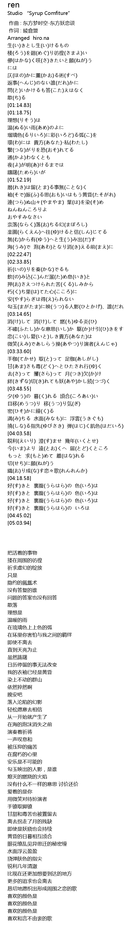 | [04:41.40] | 好(す)きと 裏腹(うらはら)の いろは |