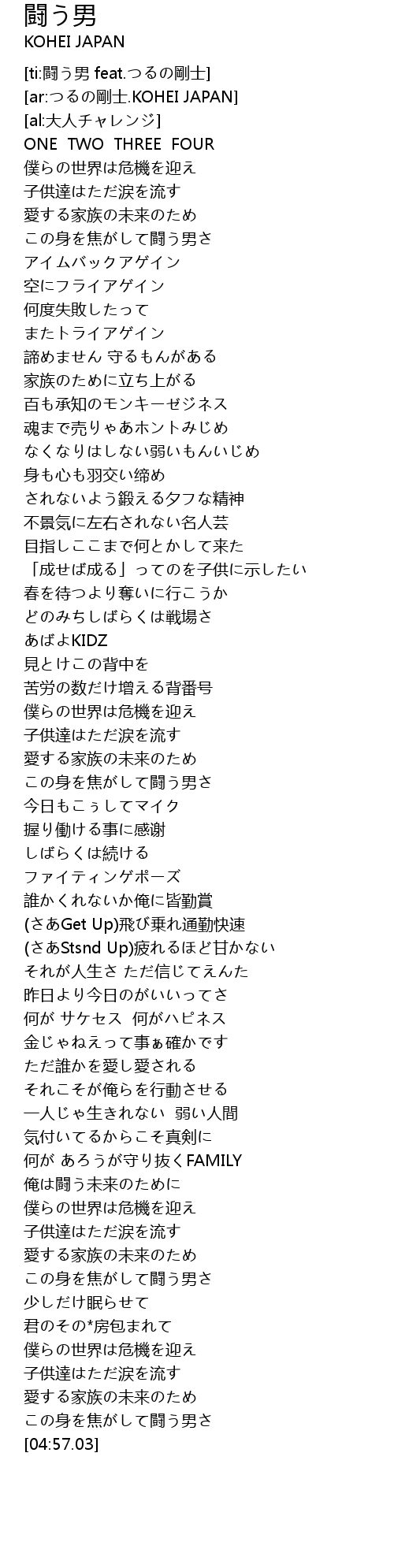 | [ti:闘う男 feat.つるの剛士] | |
