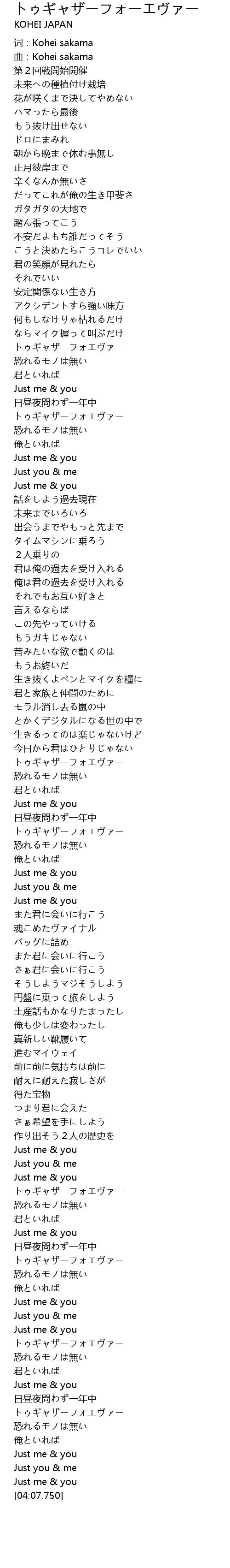 | [02:00.040] | トゥギャザーフォエヴァー |