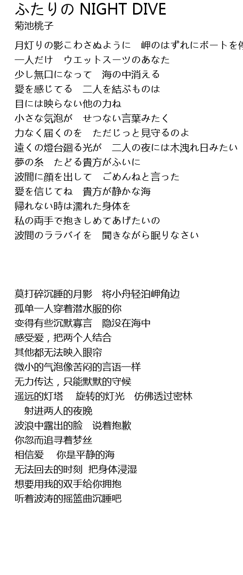 | 歌曲 | ふたりの NIGHT DIVE |