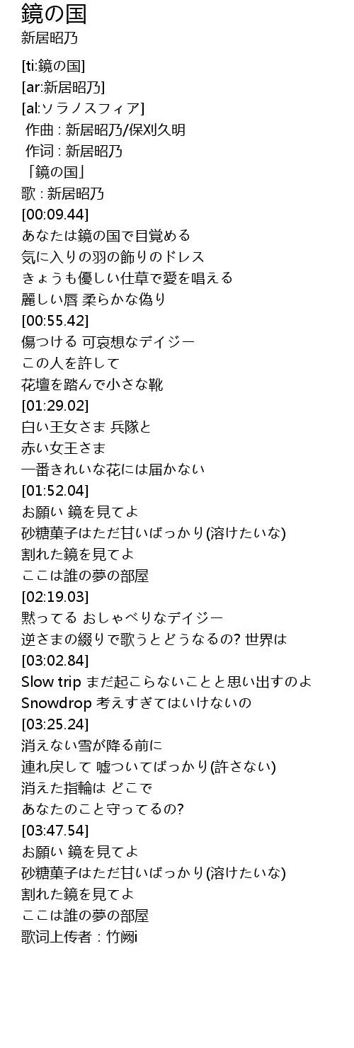 | [00:11.44] | あなたは鏡の国で目覚める |