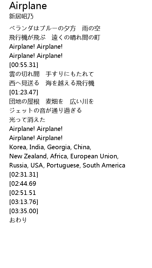 | [00:40.66] | Airplane! Airplane! |