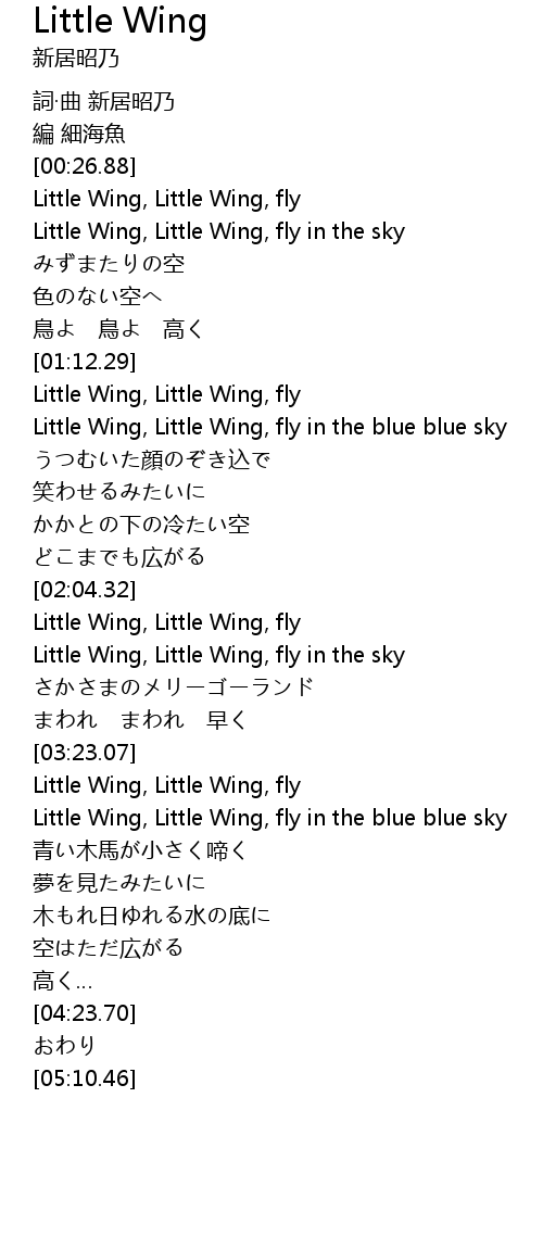 | [00:39.94] | Little Wing, Little Wing, fly in the sky |