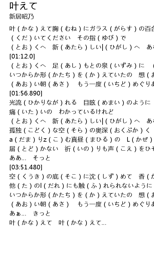 | [05:15.150] | 叶(かな)えて 叶(かな)えて… |