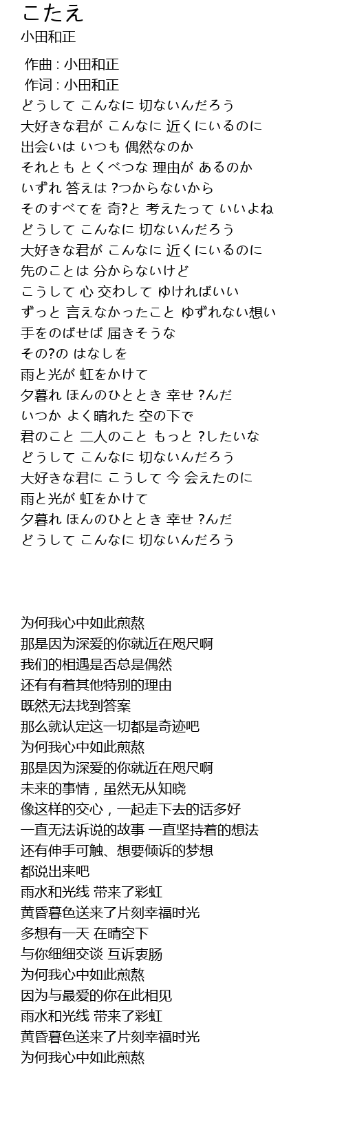 | [00:00.00] | 作词 : 小田和正 |