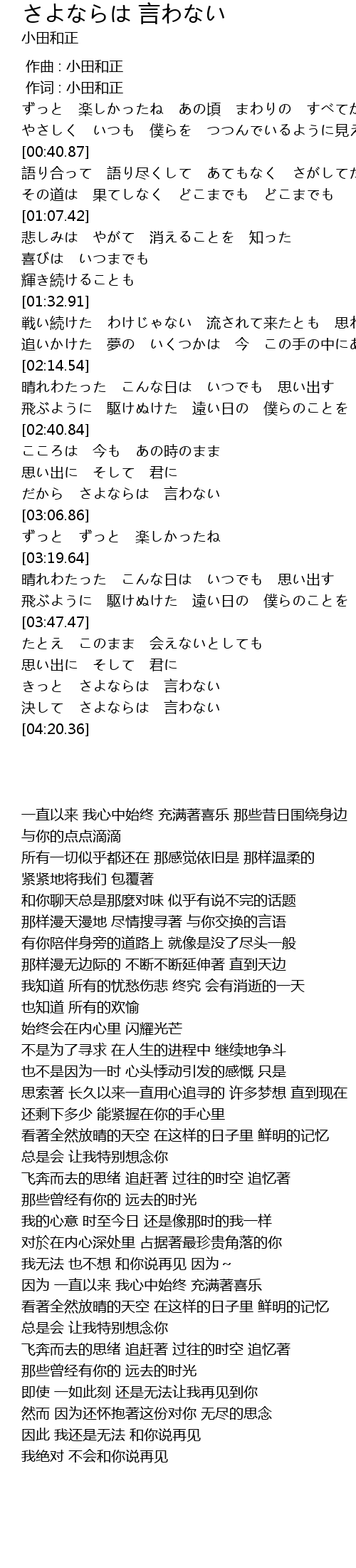 | [04:14.96] | 我绝对 不会和你说再见 |