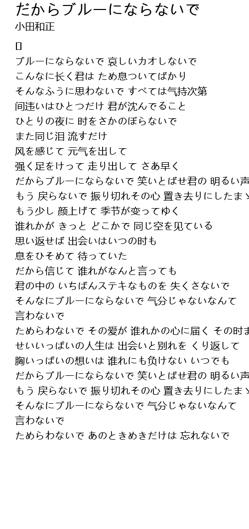 | だからブルーにならないで 笑いとばせ君の 明るい声で | |