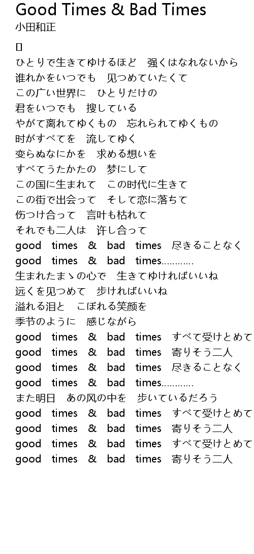 | 歌曲 | Good Times & Bad Times |