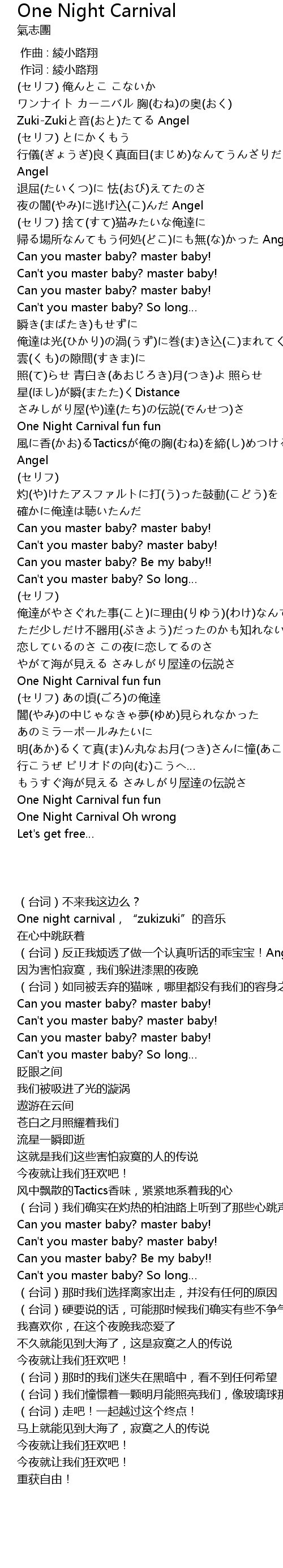 | 歌曲 | One Night Carnival |