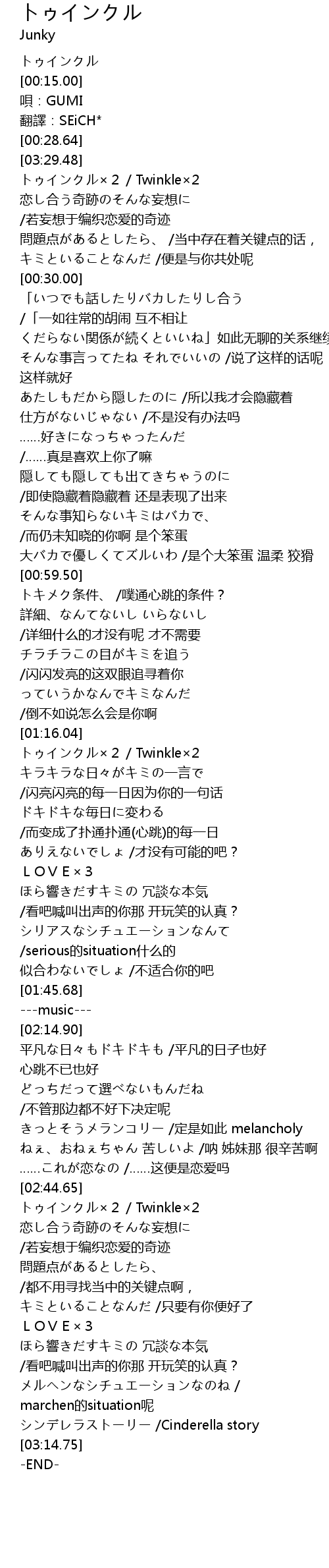 | [00:00.91] | トゥインクル×2 / Twinkle×2 |