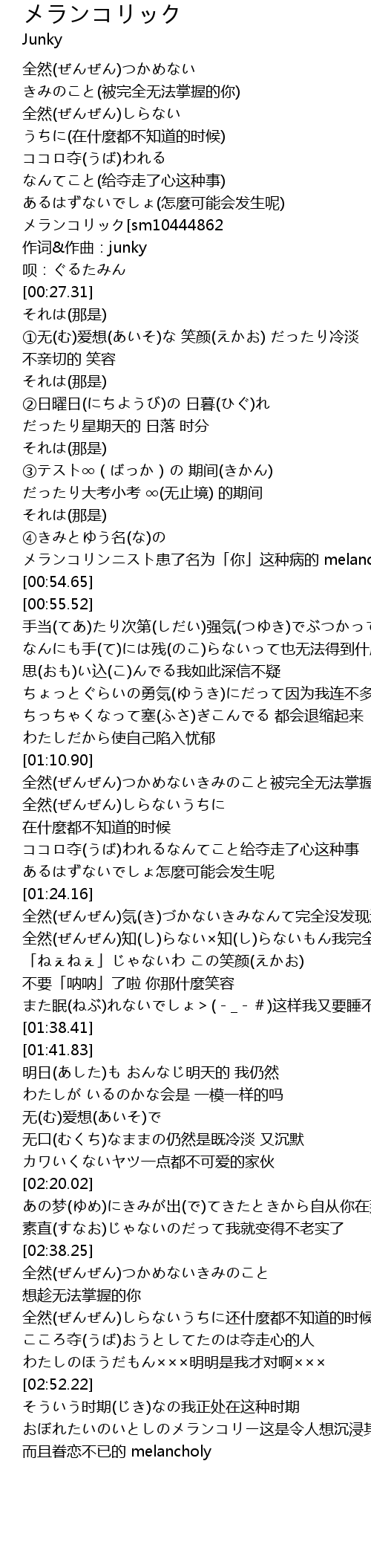 | [03:00.98] | おぼれたいのいとしのメランコリー这是令人想沉浸其中 而且眷恋不已的 melancholy |