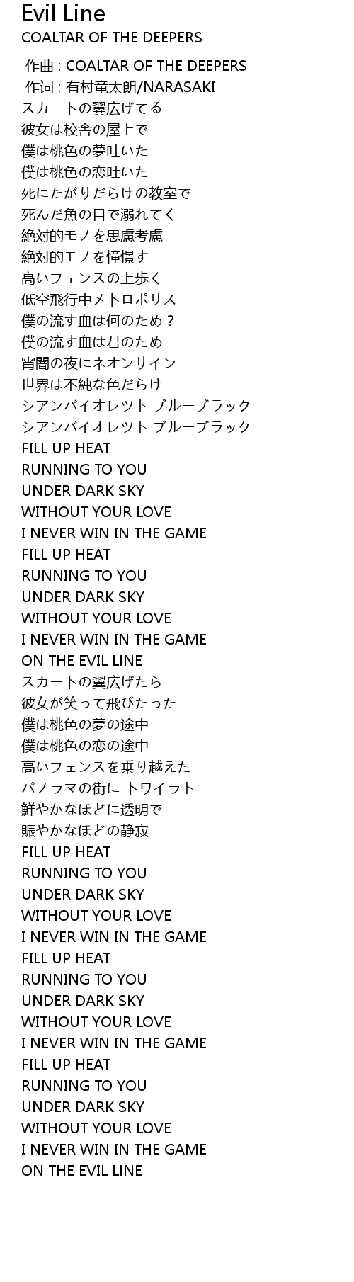 | [02:20.78] | ON THE EVIL LINE |