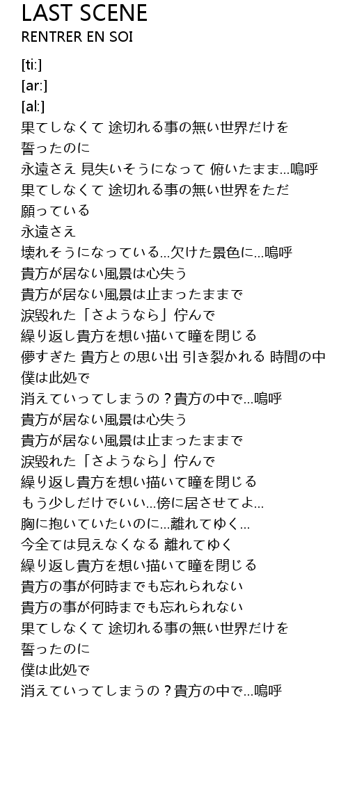 | [04:46.71] | 僕は此処で 消えていってしまうの?貴方の中で...嗚呼 |
