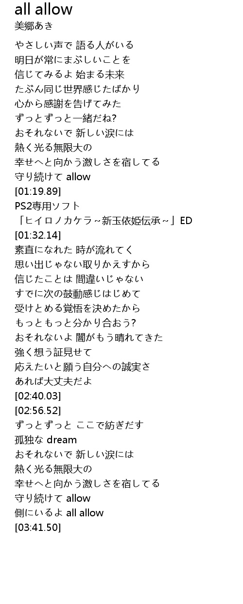 | [01:21.89] | PS2専用ソフト 「ヒイロノカケラ~新玉依姫伝承~」ED |