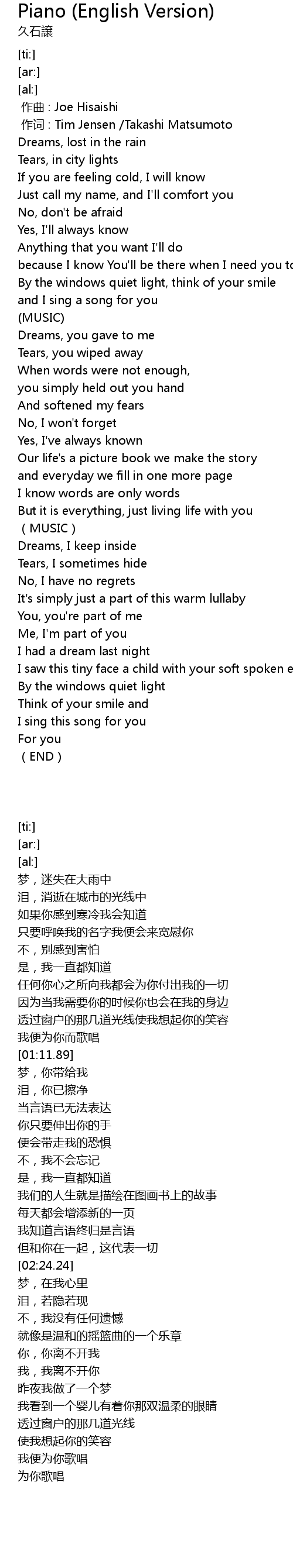 | [00:00.00] | zuo qu : Joe Hisaishi |