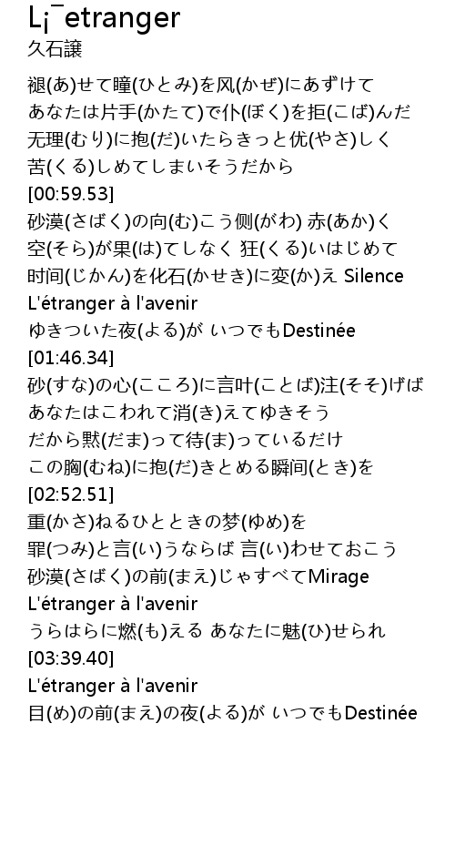 | [01:14.61] | shí jiān huà shí biàn Silence |
