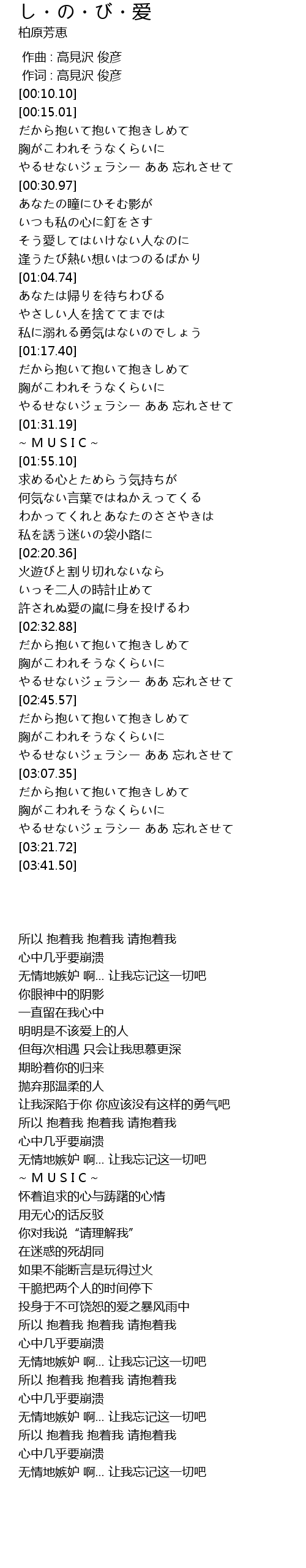 | [03:01.83] | やるせないジェラシー ああ 忘れさせて |