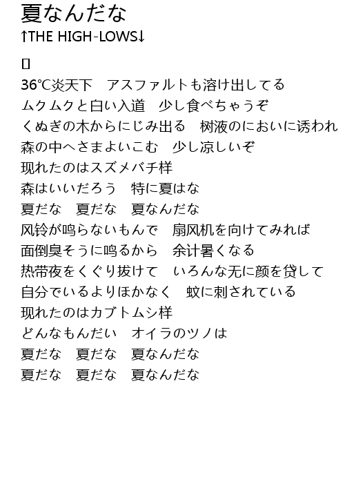 | 歌手 | ↑THE HIGH-LOWS↓ |