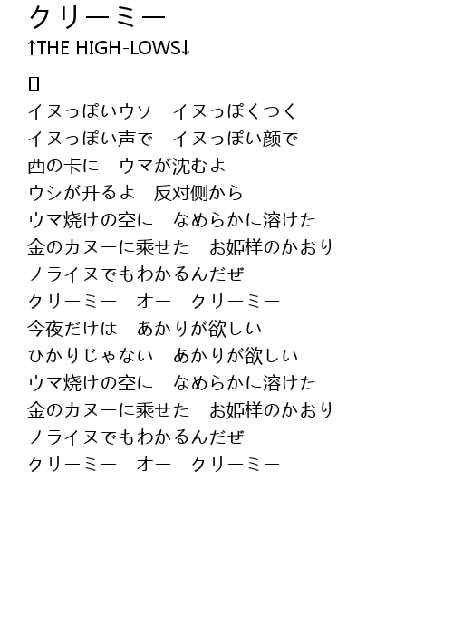 | 歌手 | ↑THE HIGH-LOWS↓ |