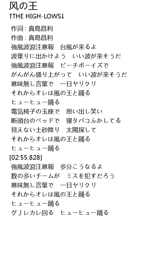 | [03:55.075] | それからオレは風の王と踊る |