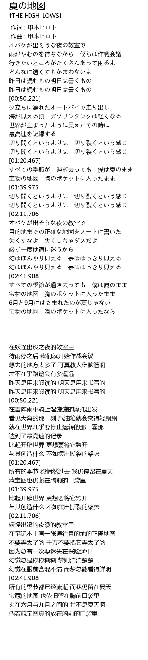 | [02:52.903] | 宝物の地図 胸のポケットに入ったまま |